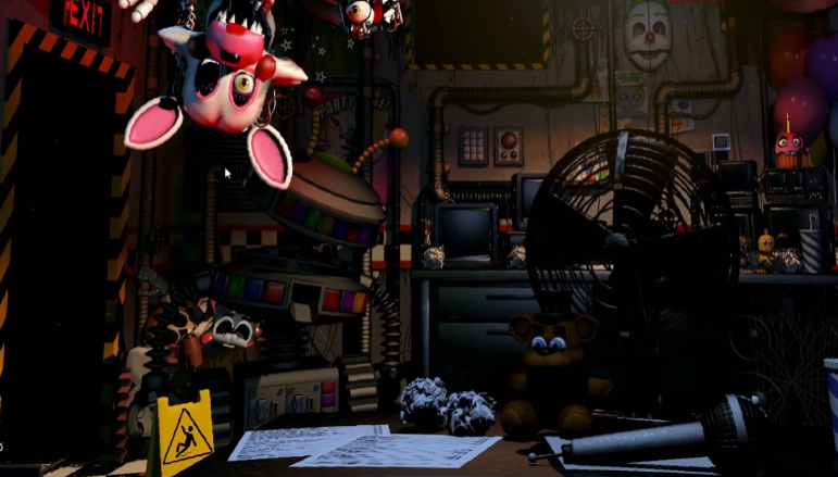 8.曼果(Mangle):他走监视器中的通风管口,他可以通过通风管口的陷阱和开关门来防御,当他被防御时会重置状态路线。他是唯一一个可以从奇卡堵住的洞钻出来的玩偶,但他进入安保室就会发出噪音并不定时的在你看监视器期间跳杀,脸白的话可能一局都挂在那里。(我有一个猜想:如果在他进入安保室的时候选择摇滚霍斯提供的帮助中消除噪音会发生什么?)
