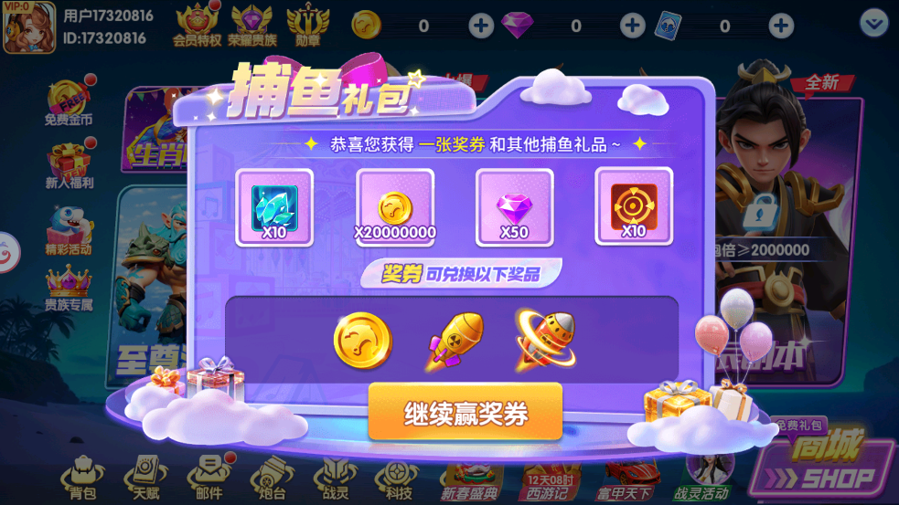 提升账号等级和VIP等级:当账号等级达到20级时,可以免费升级VIP到2级,从而获取海洋风暴专属炮台。如果将VIP升到3级,还可以解锁光棱技能的炮台,能大大提升捕获概率。
