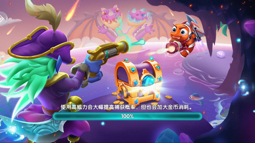 捕获目标:目标是击中并成功捕获在渔场中游动的各种鱼类,包括普通鱼群和高倍率的特殊鱼种或Boss。