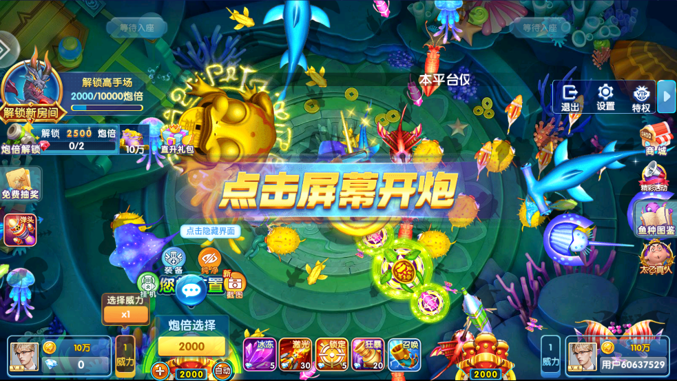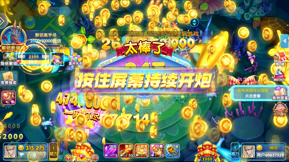 万人在线酷炫:万人同场竞技,渔场氛围热烈酷炫。