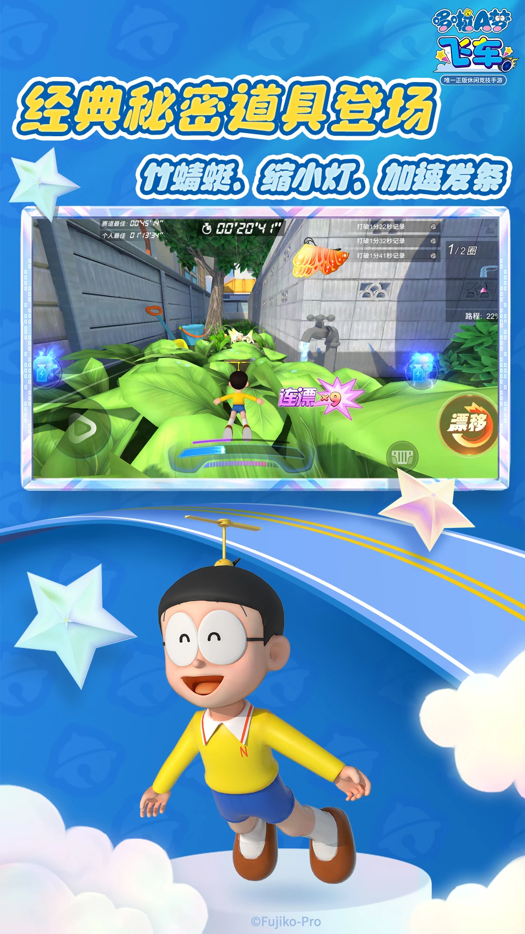 除了紧张刺激的竞速乐趣,游戏更融入丰富的玩法模式:经典竞速、道具乱斗、组队对抗、排位挑战等,满足不同玩家的竞技需求。更有哆啦A梦百宝袋中的秘密道具助阵——“竹蜻蜓”瞬间加速、“缩小灯”干扰对手、“时间暂停钟”逆转局势,策略与操作并重,让每一场比赛都充满变数与惊喜!