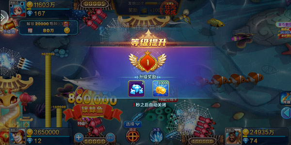 达到特定等级解锁:通过捕鱼和完成任务获得经验值,提升玩家账号等级,当等级达到要求时,可解锁更高级的炮台。