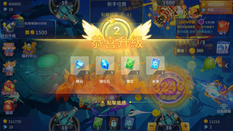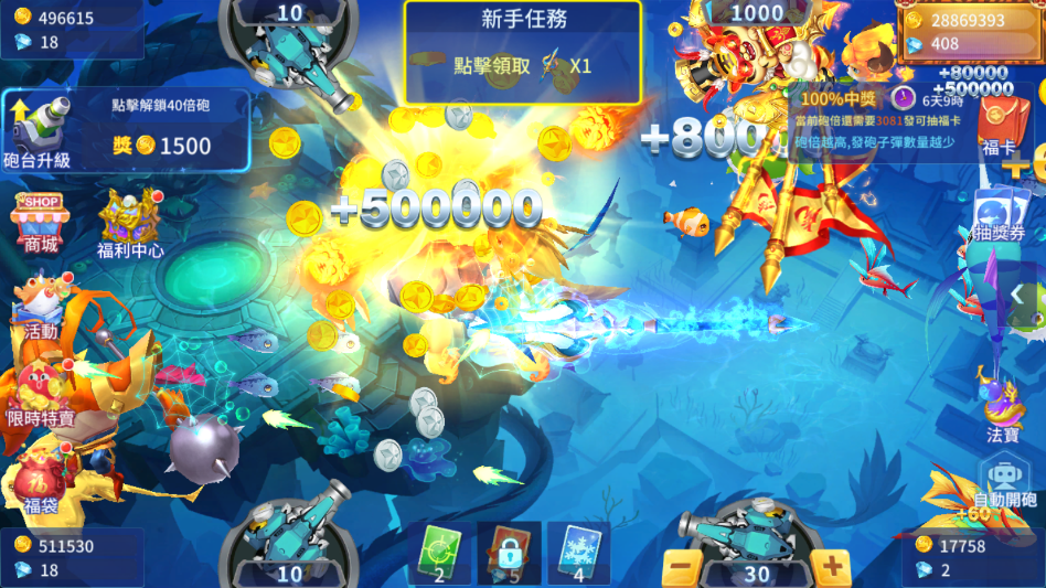 里面还有很多金币福利的活动,获取金币进行捕鱼的体验吧!