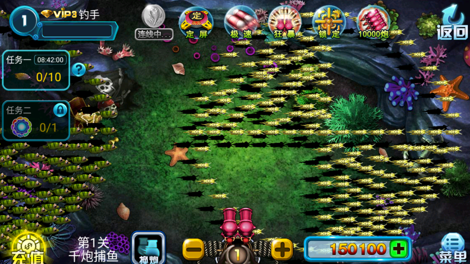 炮台等级:从基础1炮到最高9999炮,每种等级对应不同的射击威力和消耗金币量;