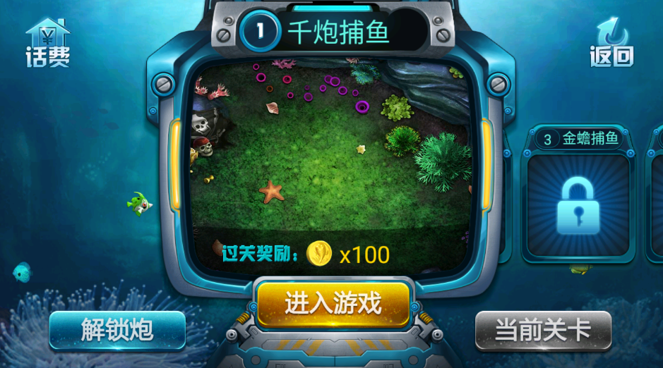 《千炮捕鱼2》(英文名:FishHunterII/CannonFishing2)属于街机射击与休闲养成相结合的游戏类型。它以“深海捕猎”为核心玩法,玩家通过操作渔炮发射不同威力的炮弹捕捉鱼群,以金币或钻石作为收益结算。