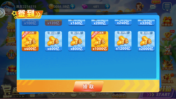 4、捕鱼过程中会随机掉落金币,可用于兑换道具、炮台皮肤等丰富奖励。