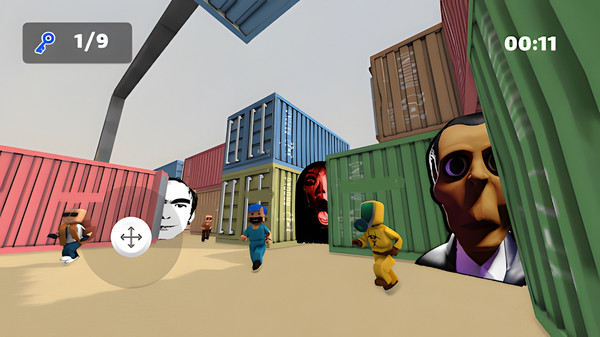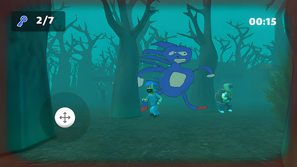 1、使用虚拟摇杆控制角色移动,灵活躲避恐怖角色的追击;
