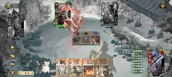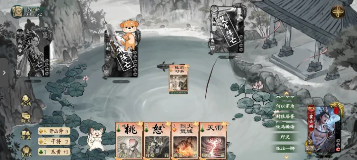 阵前对决在使用后,选择的目标与自身要依次出杀,否则会受到1点伤害。忠臣可以用此战法来消耗反贼手上的杀,在己方杀较多时也能用这张卡来取得优势,在消耗对方杀后,也能更好的保护自身及友方;这个战法也会消耗自己手中的杀,所以尽量在有2张杀以上时使用,在对方没有杀时,也可作为一种打伤害的手段。