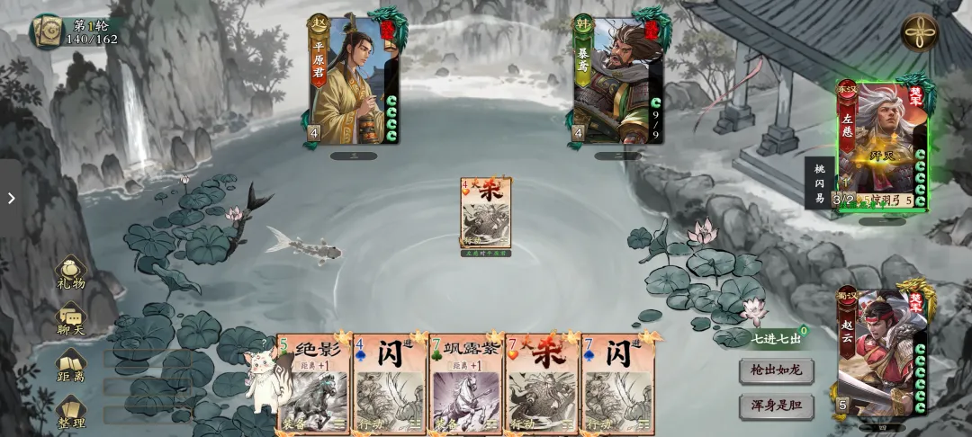 箭雨齐射是群体伤害的战法牌,其他角色如果没有闪,都会受到1点伤害,也能消耗目标的闪,方便我们(及友方)后续的斩杀。当然也要注意,如果己方武将没有手牌的情况下,不建议使用群体伤害类技能。