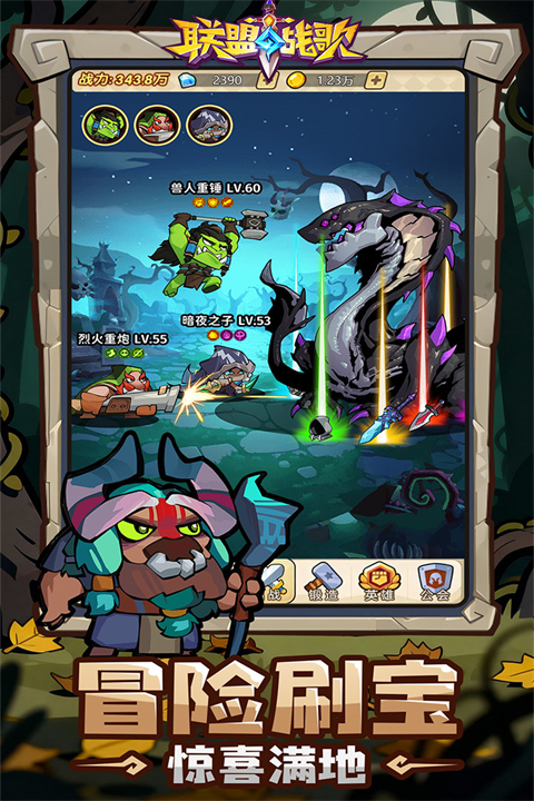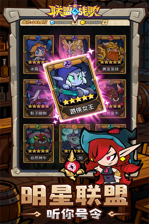 联盟战歌是一款以西方幻想世界为背景的放置型策略卡牌手游。在游戏中,你将化身冒险领主,收集来自人类、精灵、兽人、亡灵等多元种族的英雄卡牌,自由组建专属冒险团。每位英雄都拥有独特的技能、法术与职业定位,配合深度天赋系统与多维养成路径,打造千变万化的战术组合。