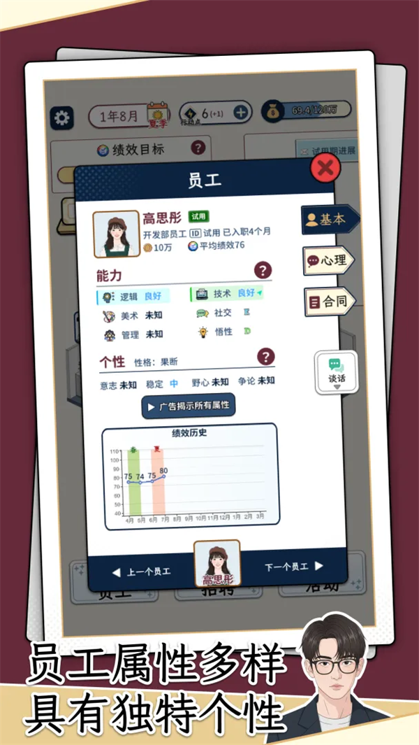 3、通过完成多样化任务、达成阶段性目标,玩家将获得晋升机会,不断提升职位等级与影响力。
