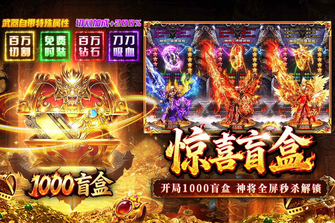 1、装备全靠打:小怪也能爆终极神装,真正实现“刀刀暴击,件件神装”;