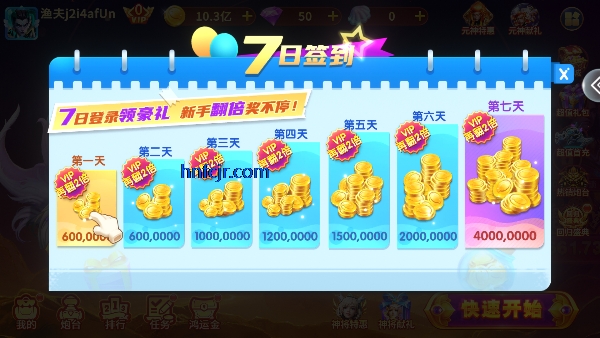 1、在《巨炮捕鱼2高爆版》(最新版本)的游戏主界面,点击屏幕左上角的【头像】区域,即可进入【个人中心】页面。