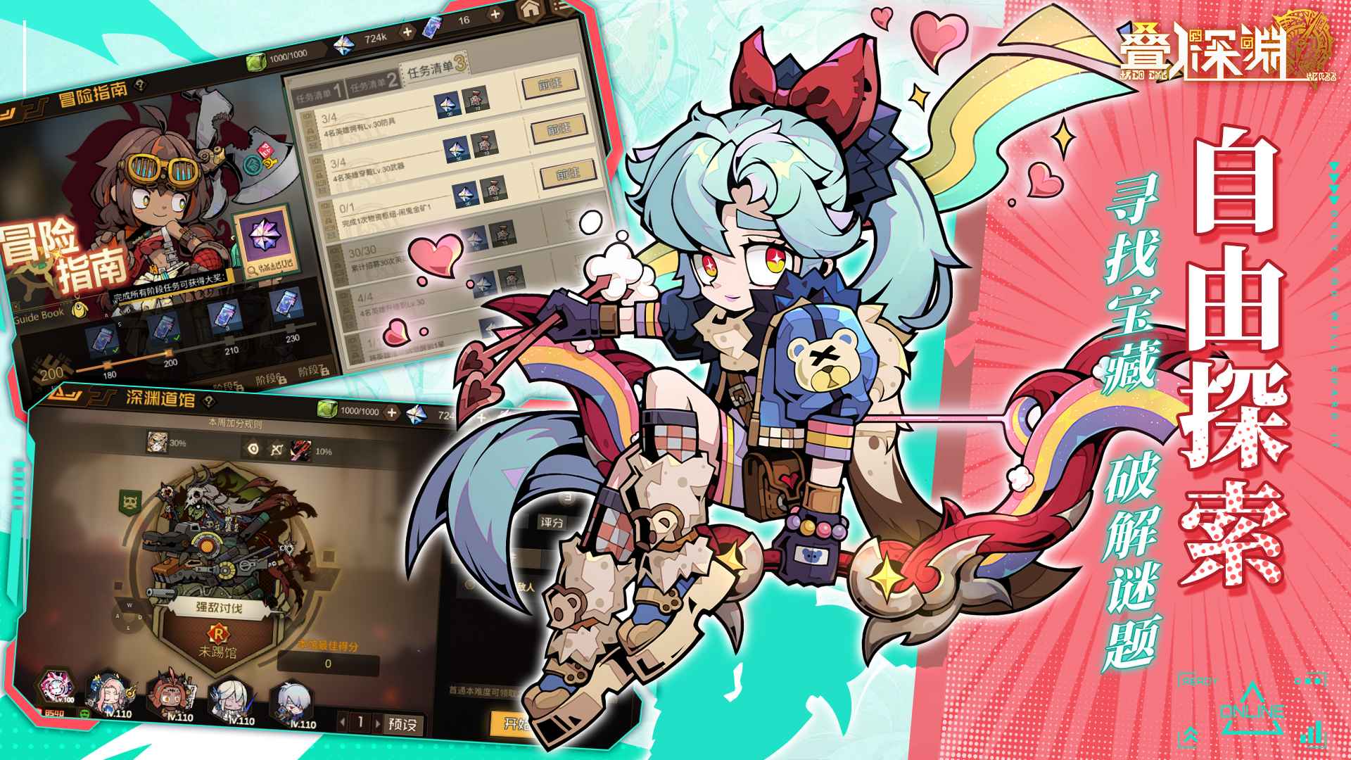 3. 丰富探索体验:能在深渊自由探索,解开谜题找宝藏,凭藏宝图追踪珍稀异兽及宝物。