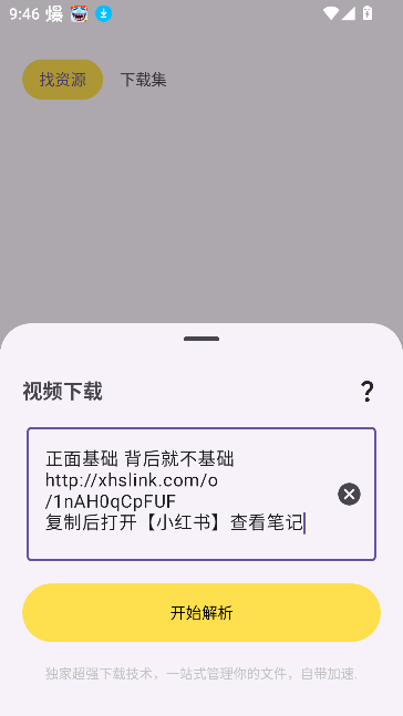 2、粘贴已复制的视频链接,点击【解析】按钮。