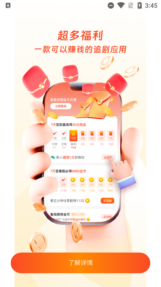边看边赚,福利满满:用户每日签到或观看短剧即可获得红包奖励,让娱乐时间产生实际收益,增加吸引力。