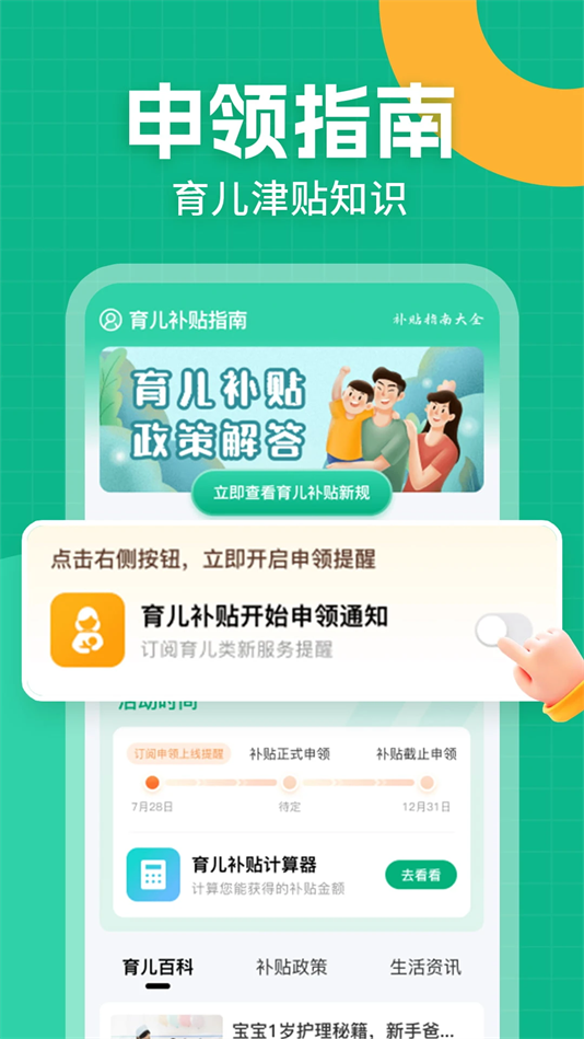 3、全流程提醒 + 专业客服护航,关键节点主动通知,申报进度随时掌握,辅以在线答疑服务,全程贴心陪伴,让育儿补贴申领省心又安心。