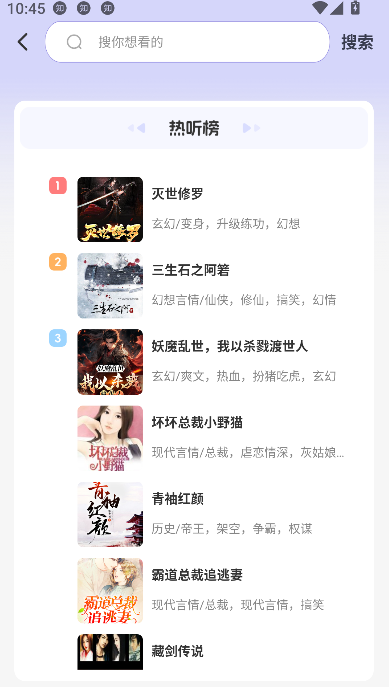 2、App内置多维度小说排行榜帮你做选择:通过榜单推荐,轻松找到高分佳作,告别“听书荒”。
