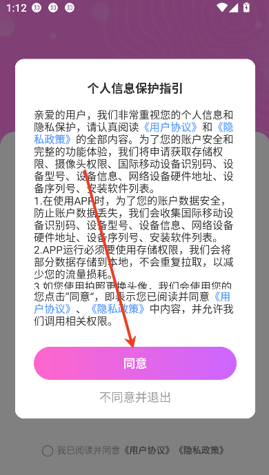 1、打开app点击同意隐私协议政策