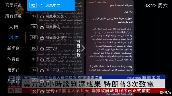 1、首先,轻触屏幕唤醒控制菜单,点击底部或侧边的【节目列表】按钮,即可展开全部频道。