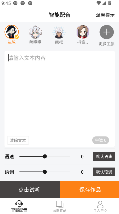 3、为提升创作效率,南瓜配音针对不同应用场景提供智能参数预设,如语速、语调、停顿间隔等,系统自动推荐最优配置