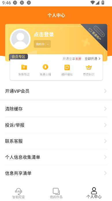 2、在个人中心页面,点击顶部【登录】按钮,系统将跳转至登录注册入口。
