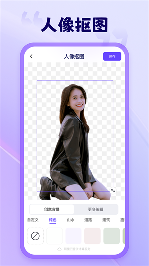 3、进入【人像抠图】功能,选择相册中的照片或现场拍摄
