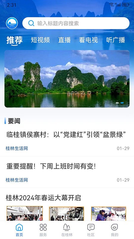 4、内置高清直播、短视频、专题纪录片、本地活动回放等丰富视听内容,融合广播、电视与新媒体优势,打造沉浸式视听体验,讲好桂林故事。
