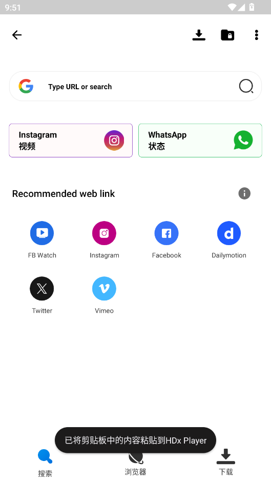更贴心的是,它自带浏览器和视频下载功能!刷到喜欢的短视频或网页视频?直接用它解析并保存到本地,轻松搞定下载需求,尤其适合爱从社交平台保存视频的朋友。