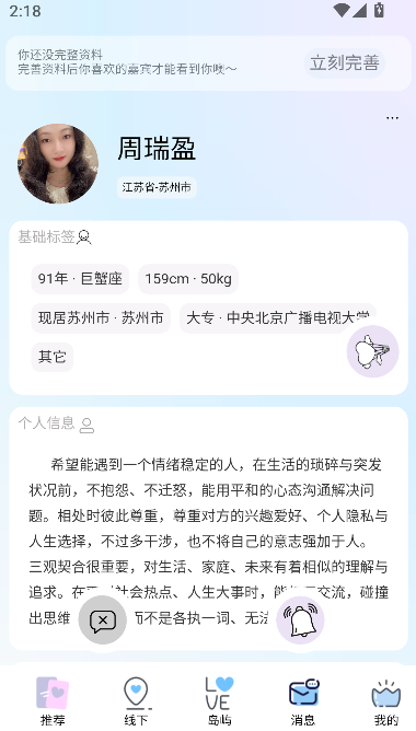慕爱唯依采用多维度身份核验机制,涵盖实名认证、学历验证、职业信息核对、人脸识别等多重审核流程,严格筛选用户真实性,有效过滤虚假信息,从源头保障交友环境的纯净与可靠。基于用户性格特质、价值取向、生活方式、情感诉求等深层标签,通过AI算法精准推荐三观相合、思维同频的潜在伴侣,让每一次相遇都更有意义。献给那些依然相信爱情、认真对待关系的你。