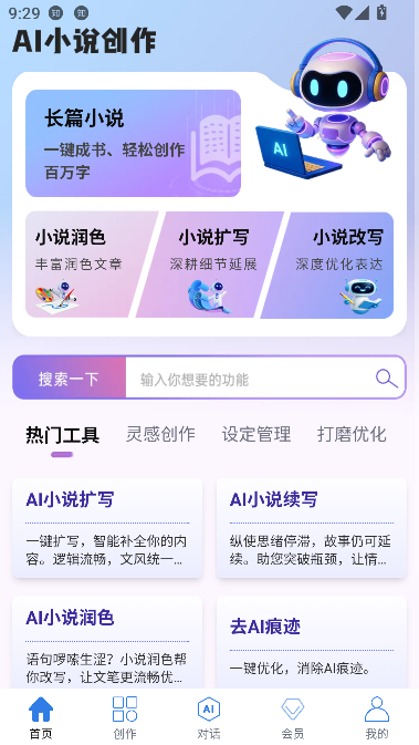 AI小说创作无论是万字长篇一键生成,还是细腻的情节扩写与段落改写,AI小说创作App都能轻松应对。支持多种文风自由切换,古风、现代、悬疑、言情、科幻、玄幻等风格随心定义,精准匹配不同题材创作需求。同时,内置智能润色功能,可自动优化语句表达、提升语言流畅度与文学质感,让文章更具可读性与感染力。立即下载AI小说创作App官方正式版,让AI赋能灵感,轻松写出好故事!