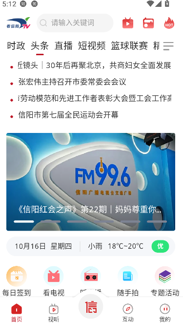 看信阳App是由信阳广播电视台官方倾力打造的主流新闻资讯平台,作为信阳地区重要的官方舆论阵地与权威信息窗口,致力于为本地市民提供及时、准确、全面的新闻服务,传递政声民意,破除网络谣言,守护清朗信息空间。