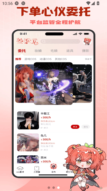 叁次元创新推出一站式委托服务平台,打通创作者与用户之间的桥梁,支持多种定制化服务在线接单与交易,所有服务提供者均经过实名认证与作品审核,保障服务质量与交易安全。用户可通过平台在线咨询、沟通需求、确认报价、签订协议、担保交易,全程透明高效,省心又安心。无论你是资深二次元老粉,还是刚入坑的新手同好,叁次元都为你提供一个被理解、被欣赏、被支持的温暖空间。