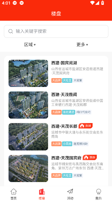 1、点击首页下方的楼盘按钮