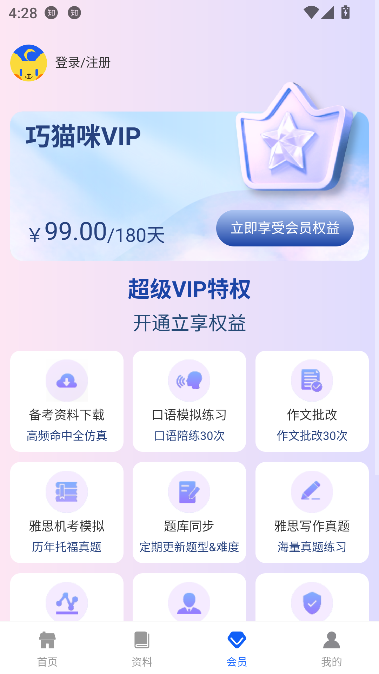 巧猫咪英语是一款专注于雅思、托福等国际英语考试备考的智能化学习平台。汇聚优质教学资源与专业师资力量,致力于为考生提供系统化、个性化、高效化的英语学习解决方案,助力冲刺高分,圆梦留学!
