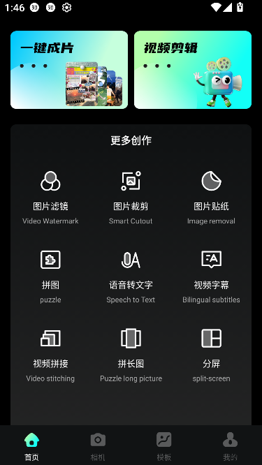 1、启动应用后,进入首页,点击底部导航栏的【模板】板块,进入模板库。