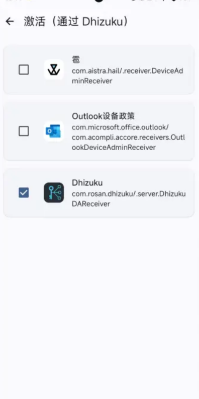 如果激活成功,Dhizuku应用会显示"已激活"状态