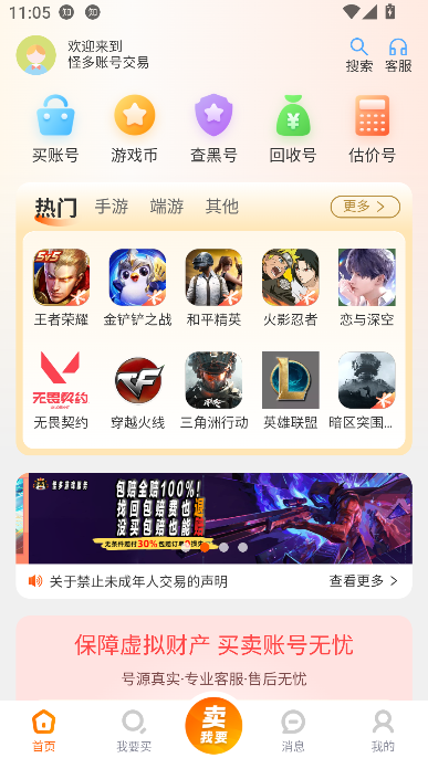 怪多交易App手机版是一款全新上线、专业可靠的游戏账号交易综合平台,致力于为玩家提供安全、便捷、高效的账号买卖服务。无论是想入手强力账号快速上分,还是出售闲置账号回血,怪多交易App都是您值得信赖的游戏资产交易平台。