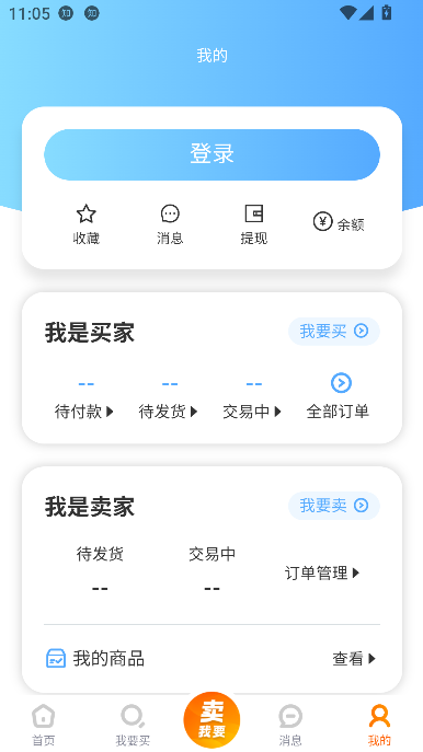 1、点击首页下方的卖按钮
