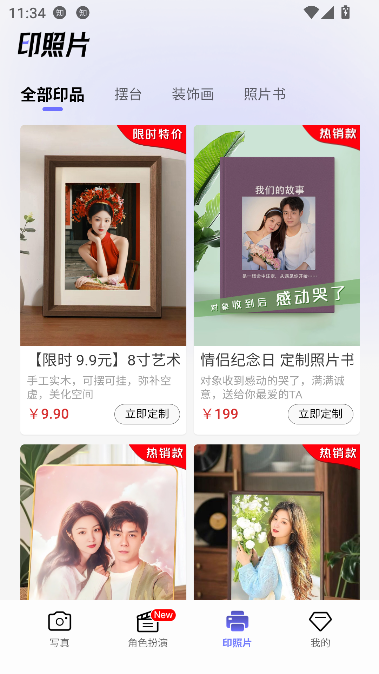 2、系统提供多种个性化打印模板:艺术相框、迷你相片、手机壳、明信片、台历、写真书等,满足送礼、收藏、装饰各种需求。