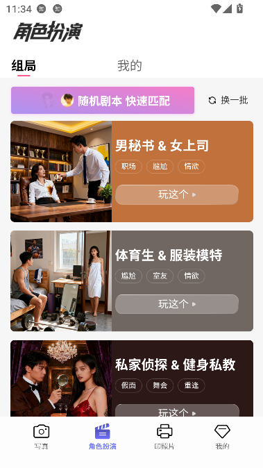4、除了静态写真,APP还提供多种趣味角色扮演模式!化身古风侠客、未来战士、异域舞者……沉浸式体验不同人设,让你的照片不止好看,更有故事感。