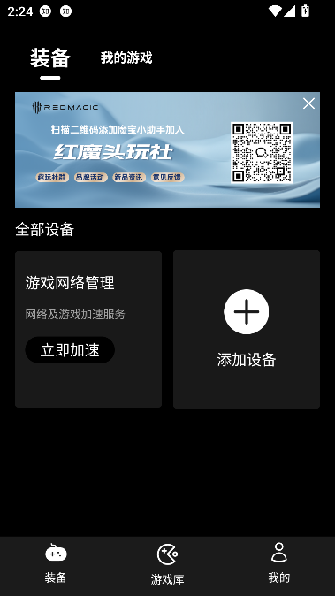 2、进入主界面后,点击“添加设备”或“+”按钮,准备将你的手柄、耳机、键盘等外设接入App。