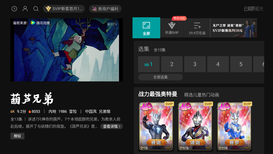 腾讯视频电视版app又名云视听极光,是腾讯视频这个APP的TV适配版本!