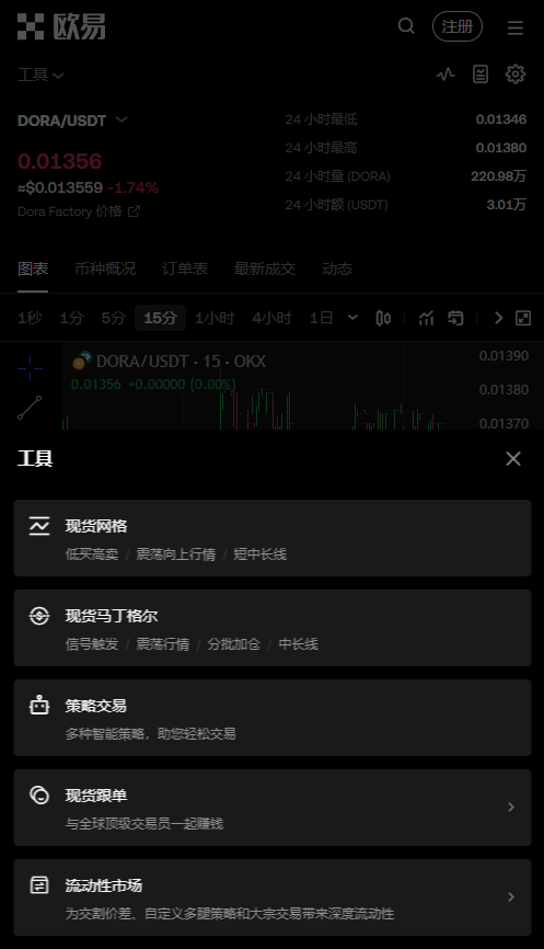1.打开欧易App,点击页面下方的【登录/注册】,进入注册页面;
