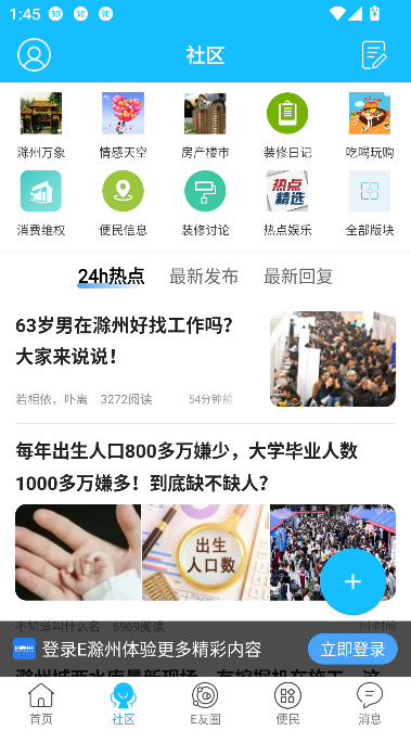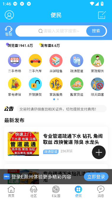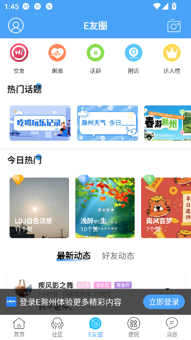 e滁州App集本地资讯、便民服务、就业信息、社交互动于一体,致力于为用户提供全面、及时、实用的城市生活信息,让你足不出户,也能掌握身边事,畅享智慧新生活。立即下载e滁州App官方正版,开启智慧滁州生活新篇章!