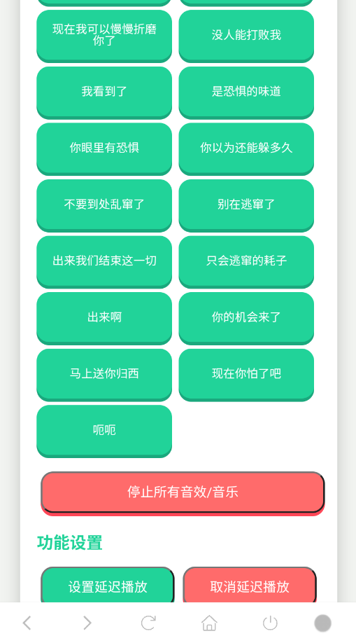 5.点击“停止所有音效/音乐”按钮,可立即暂停当前所有正在播放的音频,操作即时生效,方便随时控制。
