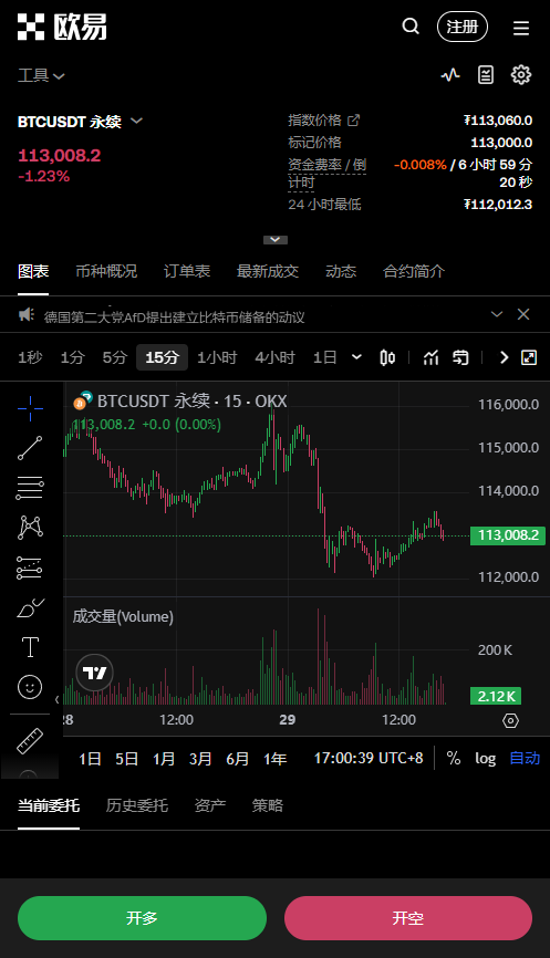 1、打开OKX App,点击【交易】,选择【策略】,在【组合套利】里选择【抄底宝】/【逃顶宝】