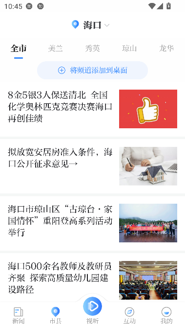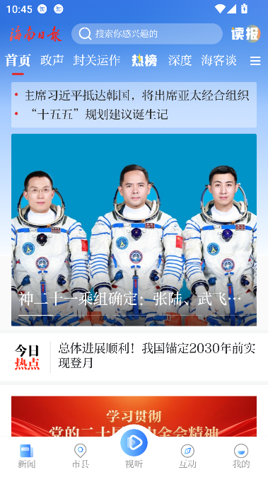 1、打开海南日报App,在底部导航栏中点击【视听】版块,浏览新闻内容时,点击进入您感兴趣的文章或视频详情页。