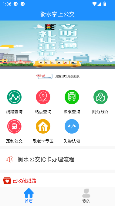 1、启动“衡水掌上公交”App,确保已开启定位权限。在首页点击【线路查询】功能,进入线路搜索界面。