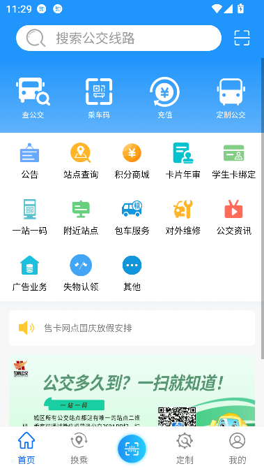 1、进入应用后,您即可使用多项便民服务,包括实时公交查询、公交卡在线充值、公共自行车/共享车辆租赁等,满足您多样化的出行需求。